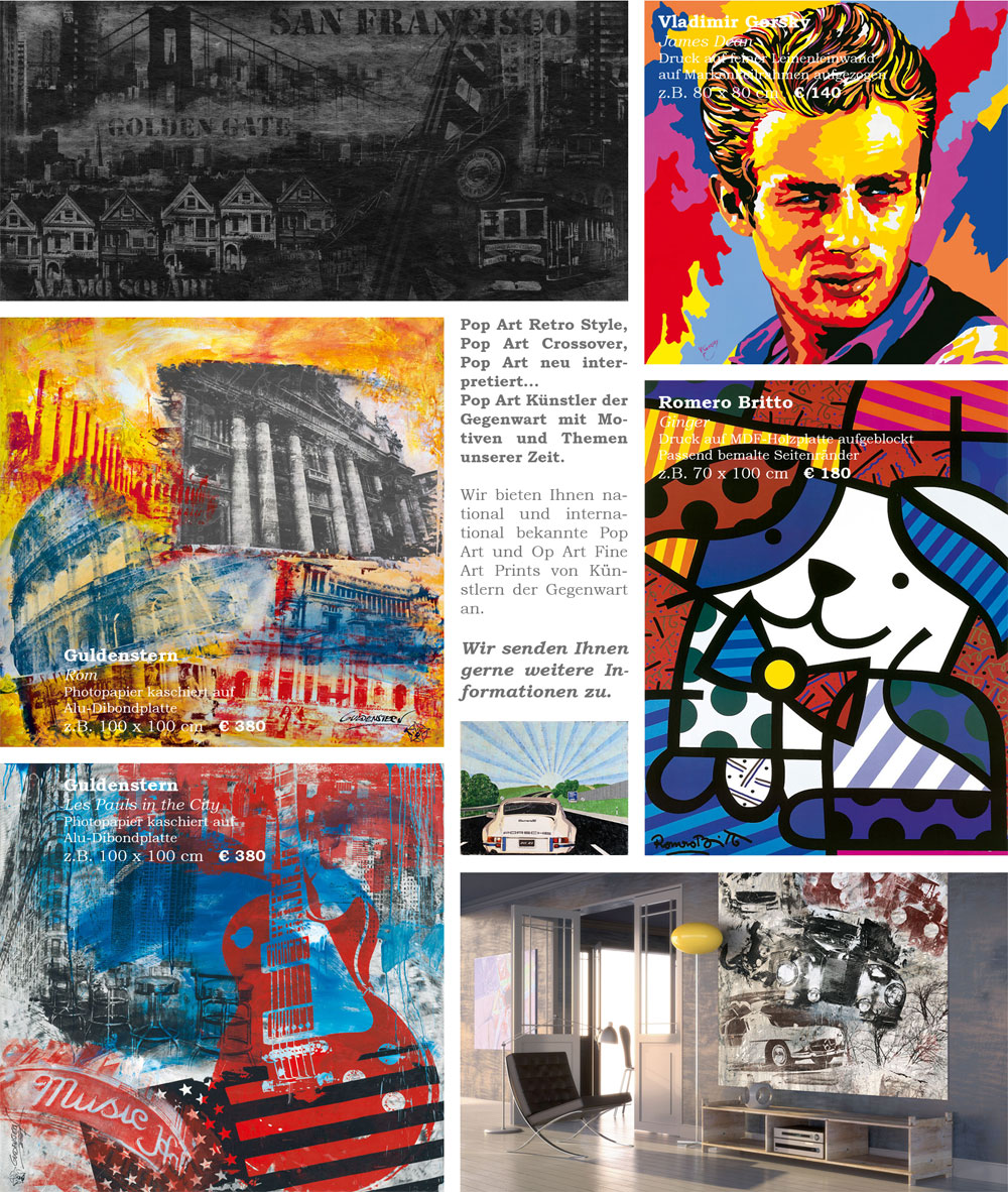 Fine Art Prints Klassische Moderne Pop Art und Op Art Zeitgenössisch Abstrakte Kunst Landschaften und Blumen Urban Art Chill Out Wandbilder |